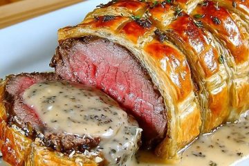 Filet mignon in puff pastry crust Ingredients for 4 people 1 pork tenderloin (approximately 600 to 700 g) 1 ready-to-use all-butter puff pastry 150 g fresh button mushrooms 1 shallot, finely chopped 1 clove of garlic, minced 2 tablespoons of olive oil 20 g butter 2 tablespoons of heavy cream […]