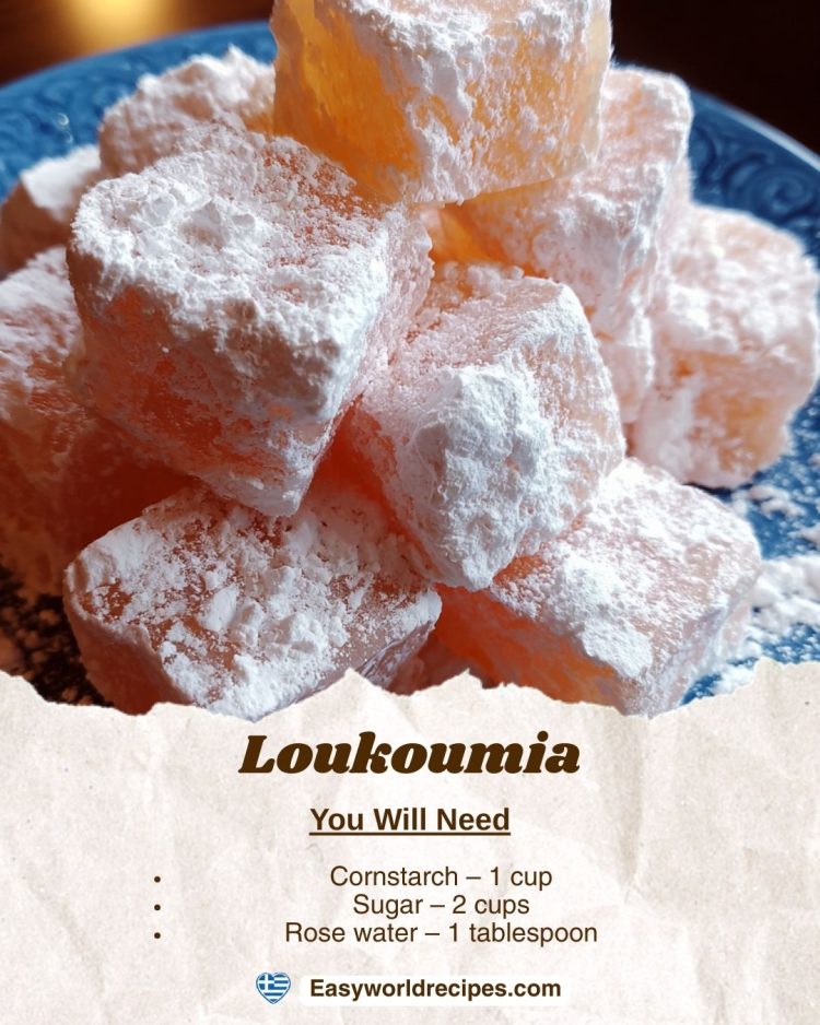 chewy cubes dusted with powdered sugar – a classic Greek sweet.