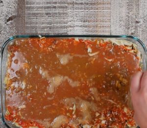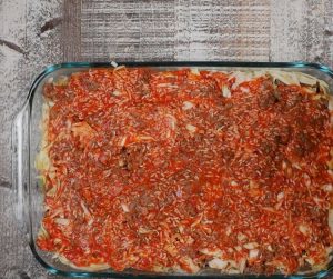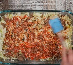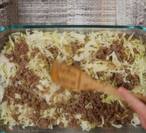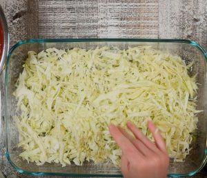 Layer casserole pan with cabbage, but wait until this magic mixture comes on top