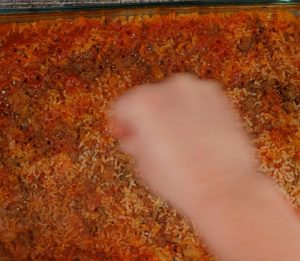 6. Place the casserole dish in the preheated oven and bake for 1 hour, 15 minutes.