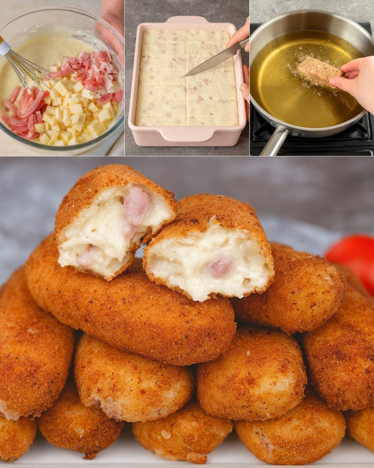 And these Crispy Milk Croquettes are no different. They’re also known as “crocchette di latte”, and they get that name because of the milky bechamel sauce it’s made with. Ham (or other deli meats) and cheese are usually added, but it’s also a great way to make use of a few meat and cheese scraps in the fridge. The taste and texture will remind you of fried cheese sticks and creamy arancini balls. They’re surprisingly easy to make and easy to customize to your liking.