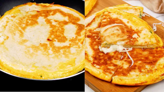 Using a spatula, carefully flip the omelette to cook the other side for another 2–3 minutes, until golden and fully cooked. Slide your crispy, cheesy, fluffy tortilla omelette onto a plate, slice, and enjoy immediately while warm.